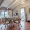 Gli appartamenti charme situati al primo piano godono di un'ampia metratura ideale per trascorrere un soggiorno in tranquillità e condivisione per una famiglia o per due coppie di amici. La vista da qui non manca, inoltre il soggiorno vivibile dà accesso ad un piccolo terrazzino privato con vista sulle montagne. L'arredamento studiato per questi appartamenti offre serenità e pace per vivere momenti unici anche in vacanza.