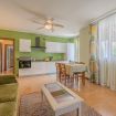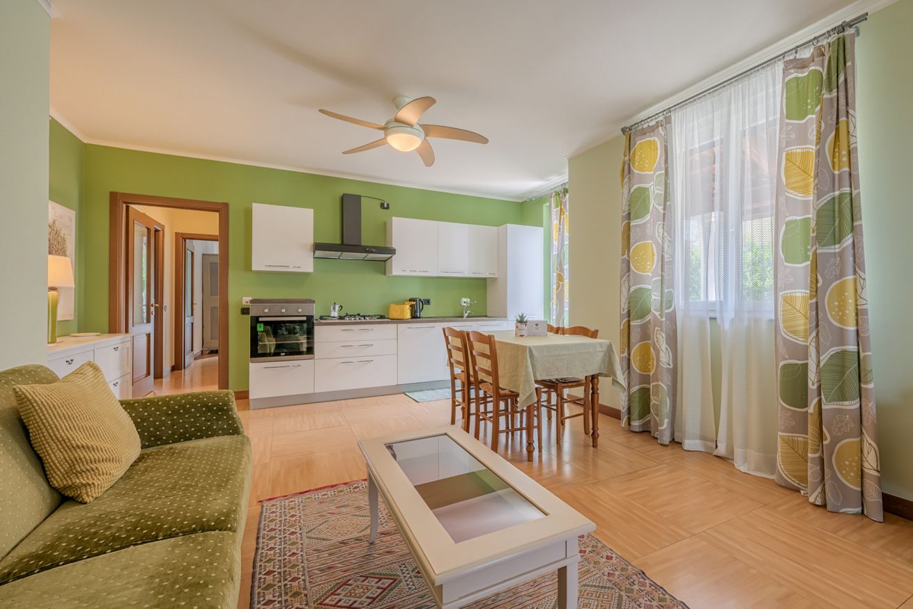 L'appartamento si presenta molto luminoso con una cucina vivibile e zona soggiorno completamente arredata ed attrezzata. Terrazzo attrezzato con vista sulle montagne.