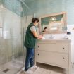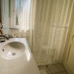 Bright bathroom with shower, hairdryer, Argania toiletries and soft linen.